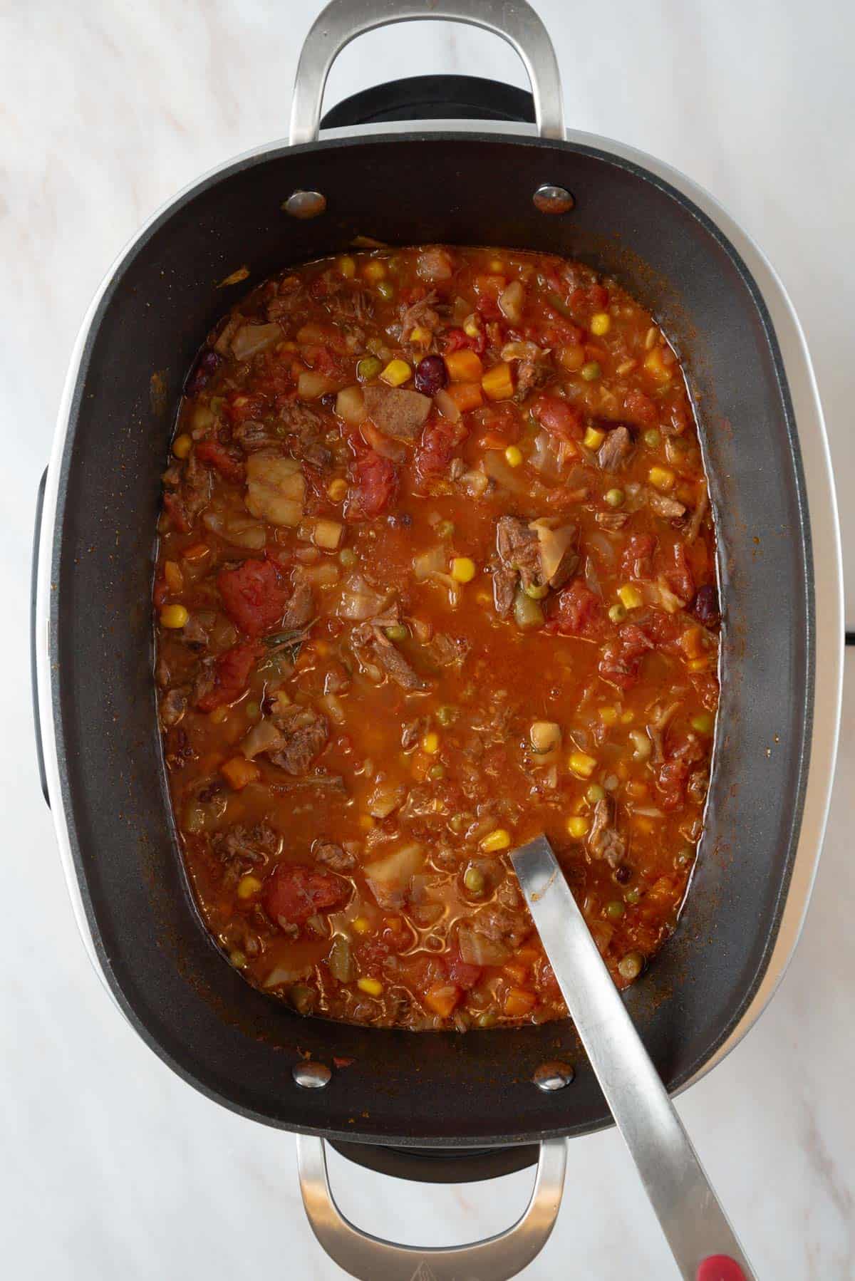 - Ground Beef - If you prefer ground beef, simply brown it in your slow cooker if it has the functionality or in a skillet before adding it to the slow cooker. Ground beef will create a slightly different texture, but the soup will still be delicious. You can also reduce the cooking time as the ground beef doesn't need as long to tenderize as stew meat or a beef roast.