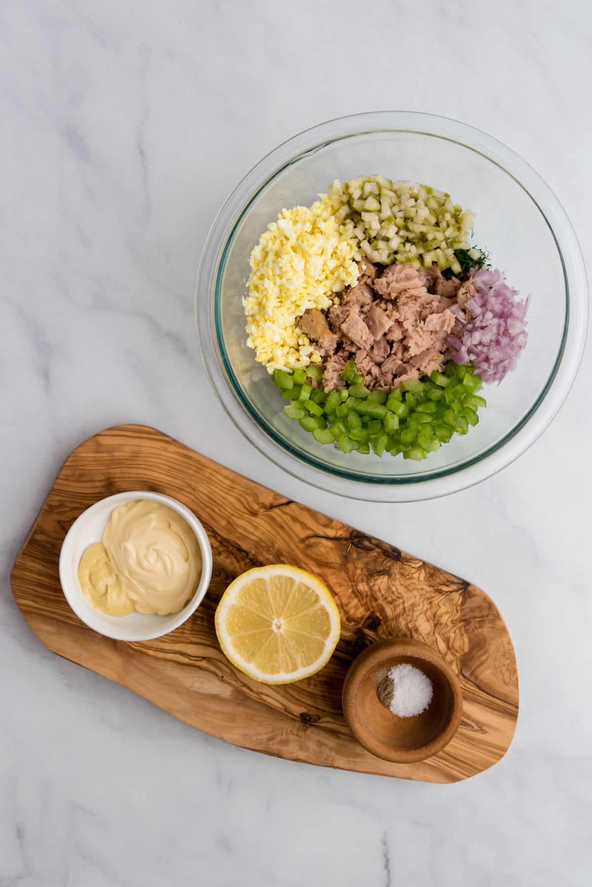 - Egg - This one is controversial but I love the silky texture of a finely chopped hard-boiled egg in tuna salad.