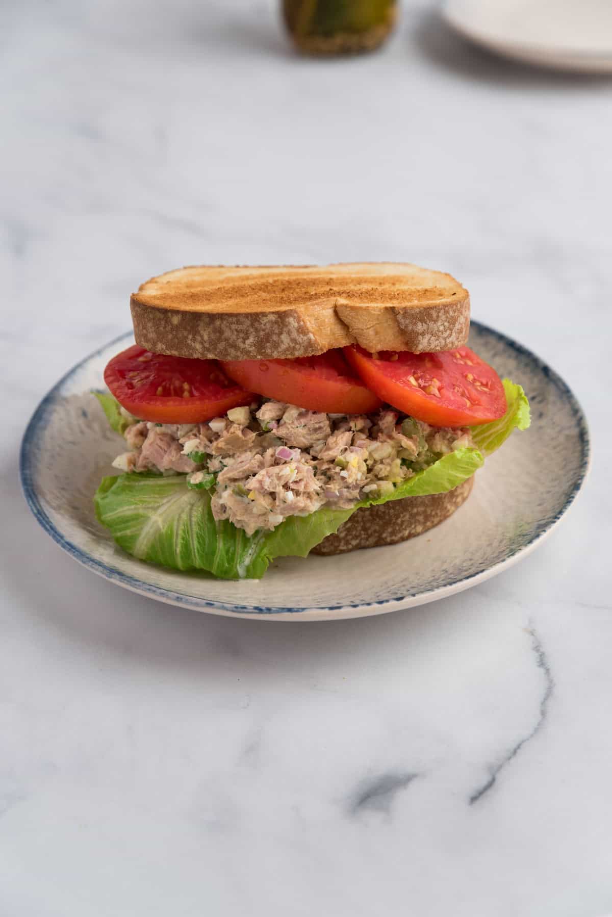 Tuna salad is one of the few foods I never get tired of eating. I'm not the girl who wants to eat the same thing for every meal. But tuna salad is an exception. I will make a double batch of this recipe I can eat it for lunch all week. On toasted bread, on crackers, on chips, on veggies! There are so many ways to serve this, I just don't get sick of eating it. Summer is my favorite time to eat tuna salad. I love to pile it with big slices of fresh tomato right out of the garden. It's unbeatable. This recipe is a straightforward classic with one tweak. I use an egg. I love the richness it brings to a salad that has a healthy dose of acidity from the pickles, mustard, and lemon.