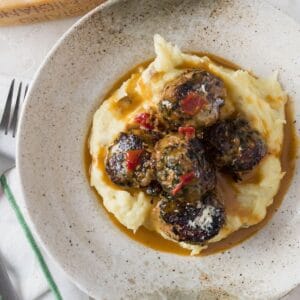 Veggie turkey meatballs in cream sauce is the first recipe I created that my whole family was actually happy I was feeding them ground turkey. I knew I'd break them eventually, but it took a few tries (and a lot of turkey burger fails) before I found a ground turkey dish that packed in enough flavor. Ground turkey can be very bland and dry. But these aren't! The sauce really puts it over the top.